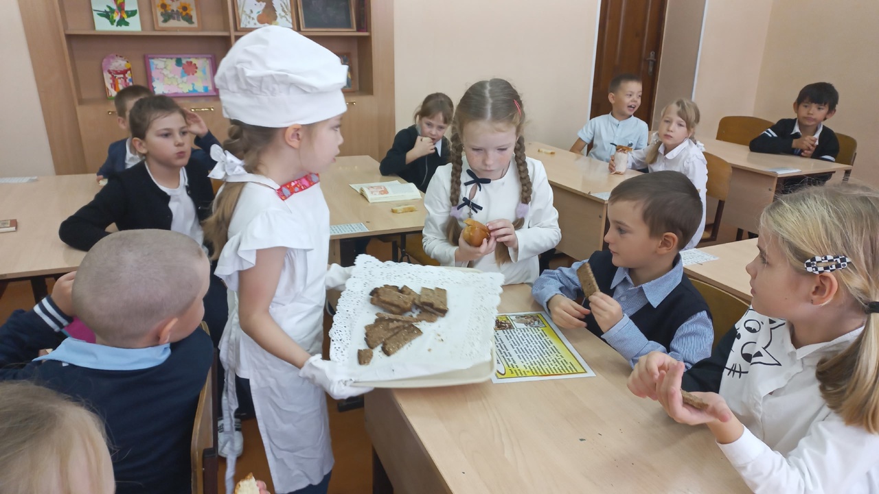 Берегите крошку хлеба! Именно с этих слов началось интересное и познавательное мероприятие для учащихся лицея 1б класса, посвящённое Дню Хлеба. Этот праздник является важным событием, позволяющим детям осознать ценность каждого кусочка хлеба и уважительно относиться к труду тех, кто его производит. Мероприятие проходило в форме увлекательной встречи с библиотекарями, которые подготовили насыщенную программу. Ребята узнали много нового и интересного о таком привычном продукте, как хлеб. Библиотекари подробно рассказывали ученикам о значимости хлеба в повседневной жизни и культуре русского народа. Дети внимательно слушали истории и задавали вопросы, проявляя искреннюю заинтересованность темой мероприятия. Кроме того, была организована интерактивная викторина с загадками и конкурсами, в ходе которой дети могли проявить свою смекалку и эрудицию. Особое внимание было уделено традициям и обычаям, связанным с хлебом. Для детей были прочитаны народные пословицы и поговорки, отражающие уважение к этому продукту питания. Например, такие известные выражения, как: «Хлеб всему голова!», «Без труда не вытащишь и рыбку из пруда, а без хлеба и пирога не испечёшь!», «Будешь трудиться, будешь и хлеб добывать!» Также ребята посмотрели специальное тематическое видео и сказку о девочке, которая наступила на хлеб. Эта история произвела большое впечатление на маленьких зрителей, заставив задуматься о ценности каждой крошки хлеба. Завершилось мероприятие праздничным угощением. Юные участники получили вкусные сладости — бублики ,а маленьким кондитером стала ученица этого же класса Анелия, которая поделилась свежеиспечённым хлебом с ребятами. | |