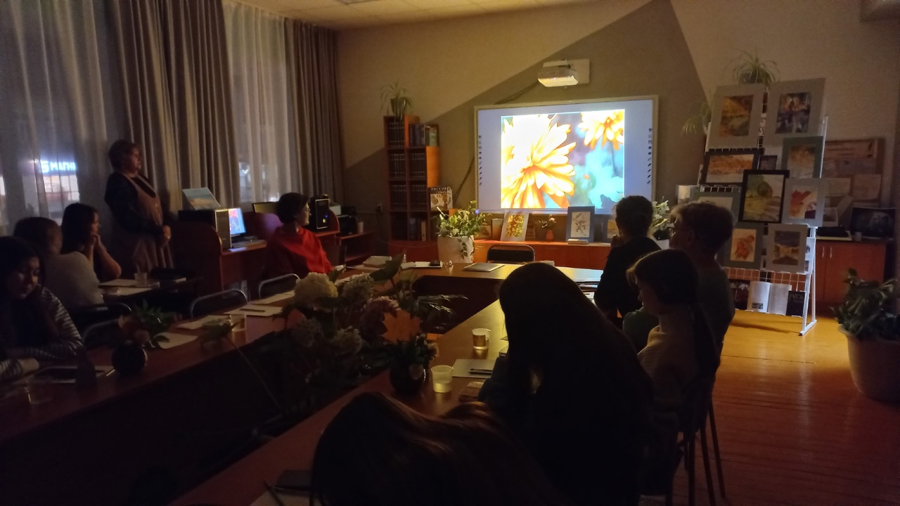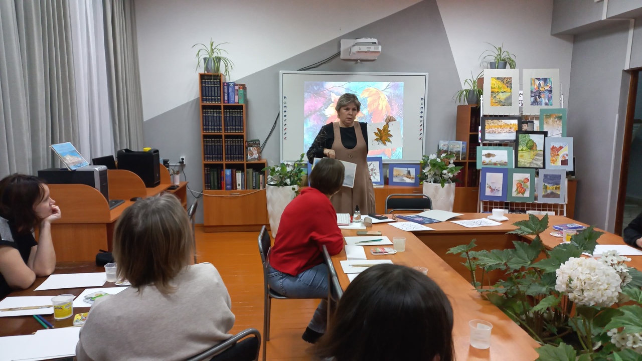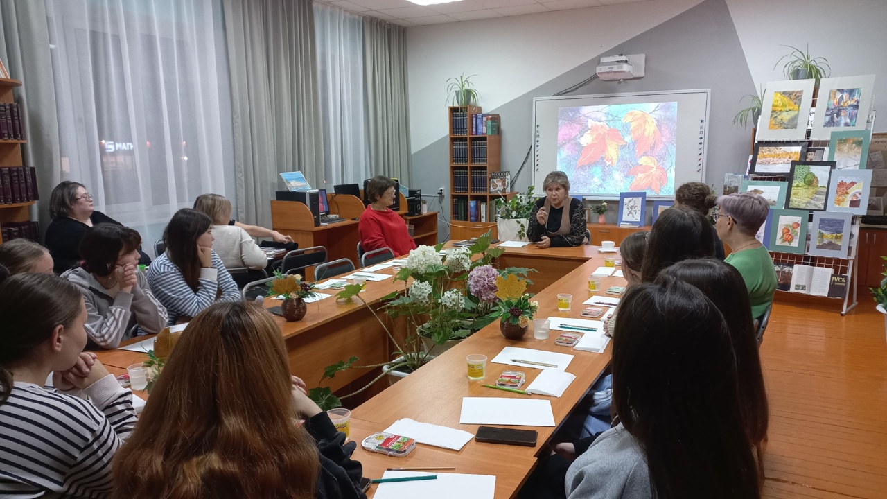 В читальном зале библиотеки состоялась встреча с художником и психологом Тёплых Галиной Федоровной. Участницы женского клуба с удовольствием погрузились в мир акварельной живописи. Помимо непосредственного рисования, вечер включал увлекательный цветовой тренинг. Звучала приятная музыка, а стихи про осень добавили особой лиричности. Под чутким руководством мастера участницы погрузились в атмосферу художественного искусства. Они смогли не только прикоснуться к прекрасному, но и сами стали настоящими художниками, создавая свои первые акварельные шедевры. «Осенний вечер акварели» оставил у всех незабываемые впечатления и желание продолжить творческое самовыражение. | |